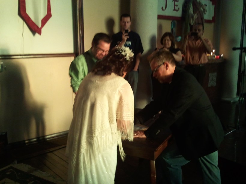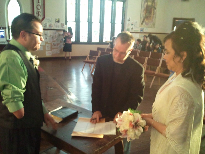 Mr. and Mrs. Ortega tied the knot today in a beautiful wedding officiated by Paul. Many friends and family celebrated the union, including family in Mexico joining us on Skype. It was a very beautiful event for the whole community!