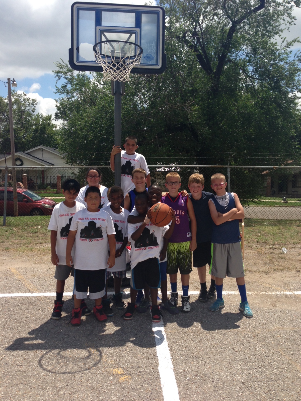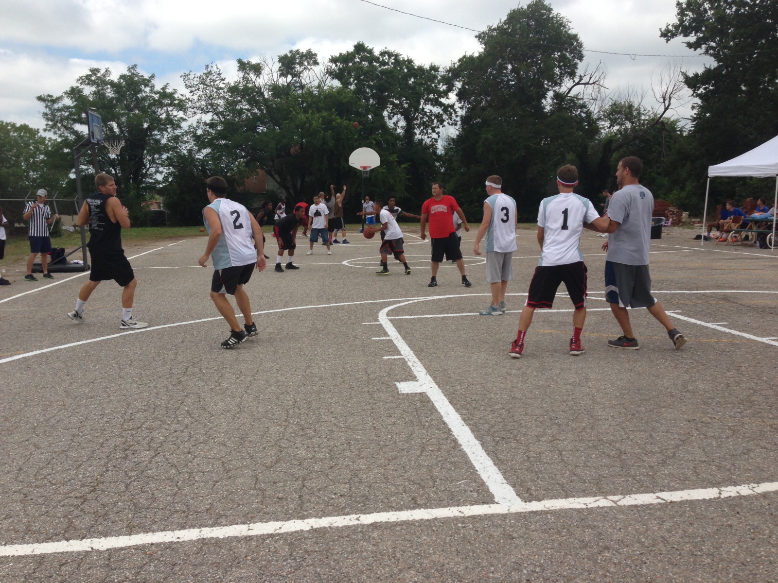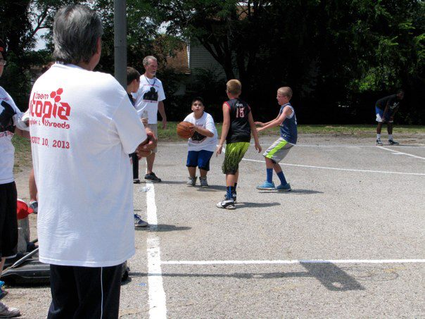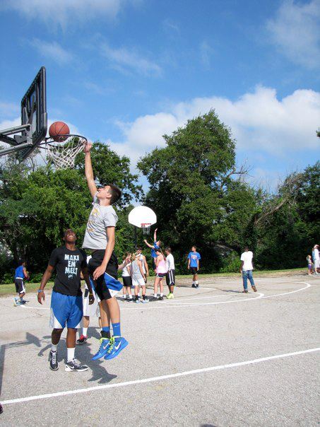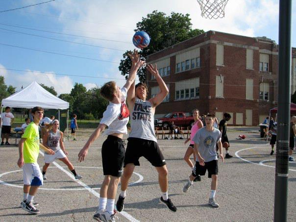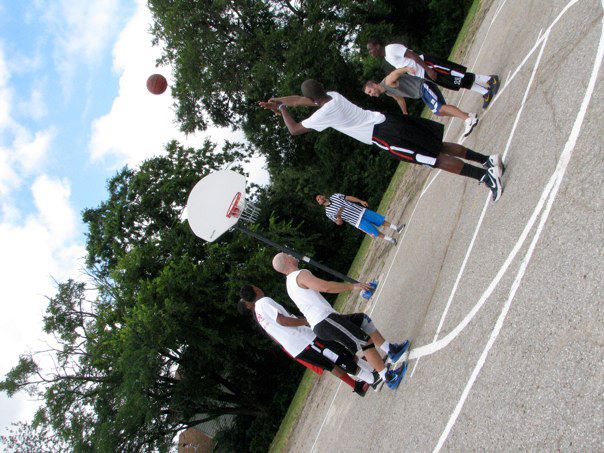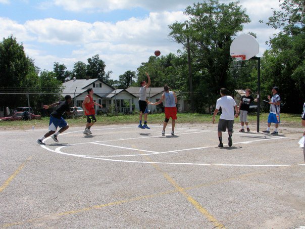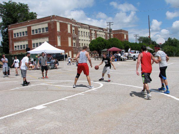 “What a beautiful slice of God’s grace – he gave a picture of unity and collaboration with all sorts of congregations from all sorts of denominations and NON-denominations – believers loving on non-believers, the poor in material possessions and the poor in spirit; the lovers of basketball and the fans; . They just came. They just played ball. They donated and grilled hamburgers and hotdogs. They stood by in the first aid tent just in case. They served food all day. They bargained with little girls who just wanted a tiny bit of blue drink (Gatorade!) and gave her a WHOLE bottle. They dropped a $20 bill or a $100 for a bag of chips!!! They listened to the “kids'” rap music all day. ALL DAYYYYYY! (and it was LOUD). They oohed and aahed over dunks and passes and sweet shots. They laughed. They hugged. They talked. They worked together. Arm in arm. Together. For a goal (and we sweated a bit). A goal to restore the ancient dwellings (Isaiah 42). In this case, the ancient dwellings of Whittier School. For something great for God and his people. A ways to go to the $400,000 needed. But, a bunch of money raised today. Thank you Lord for this picture of HOPE. This might have been my best day of the summer. And I’ve had some good ones.”